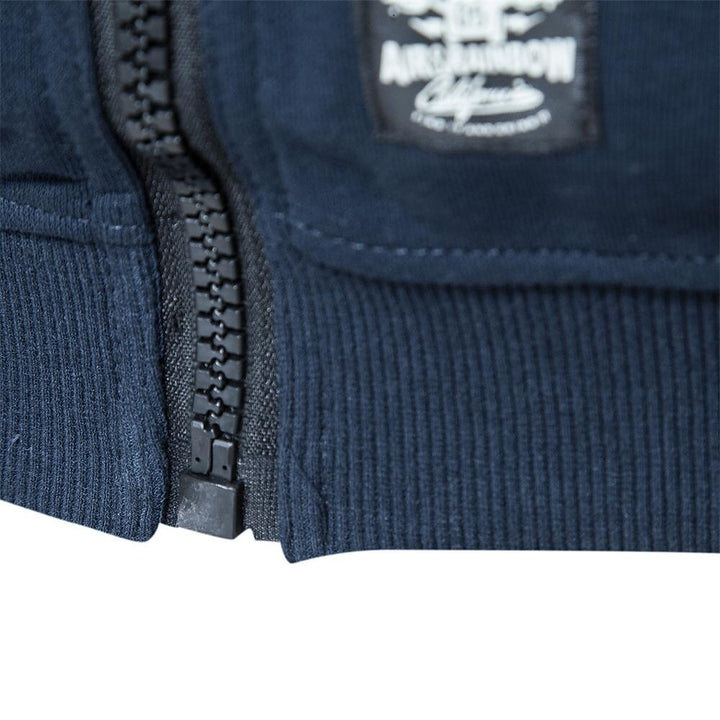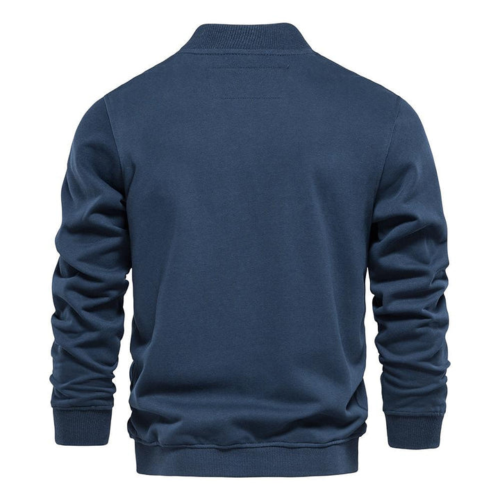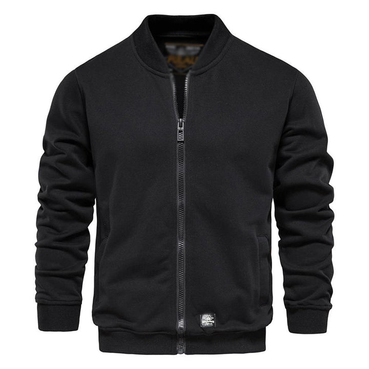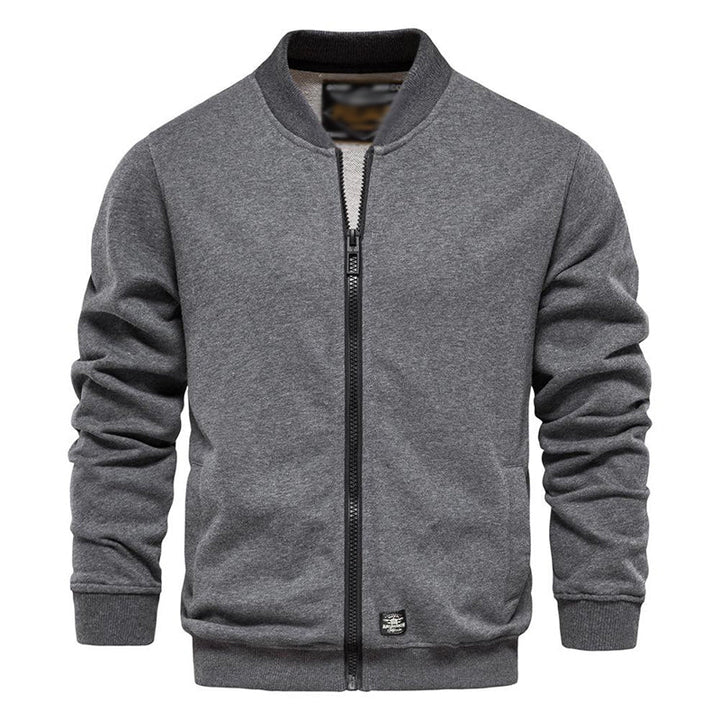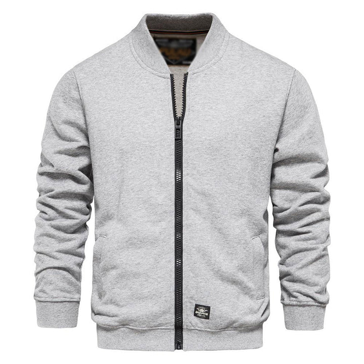 Men's Baseball Collar Solid French Terry Zip Sweater Jacket