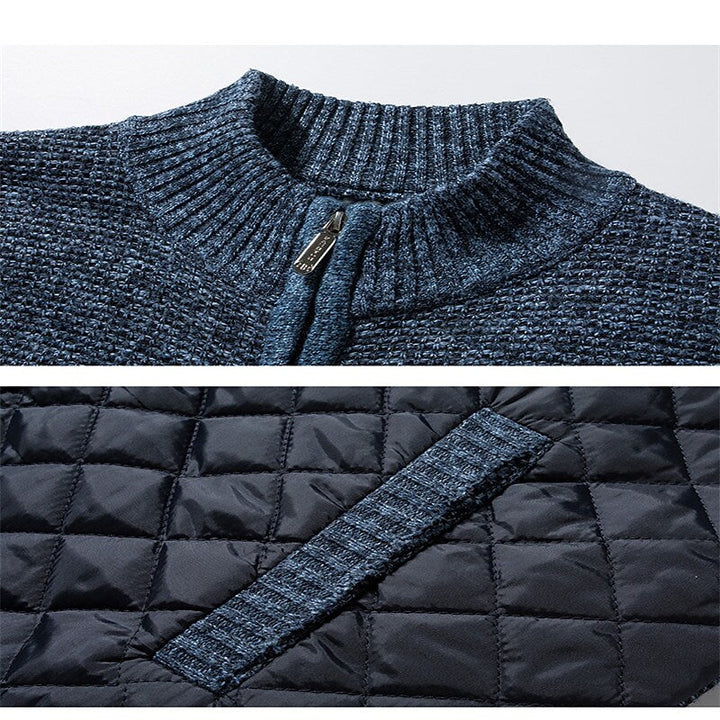 - Mens zipper knit jacket has classic stand collar, two slant functional pockets, not fake.Fully fleece lined, ultra soft and warm.