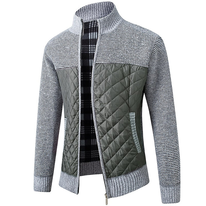 Men's Color Block Stand Collar Full Zipper Cardigan