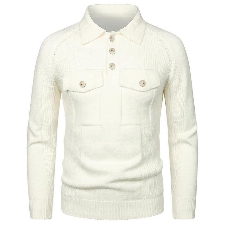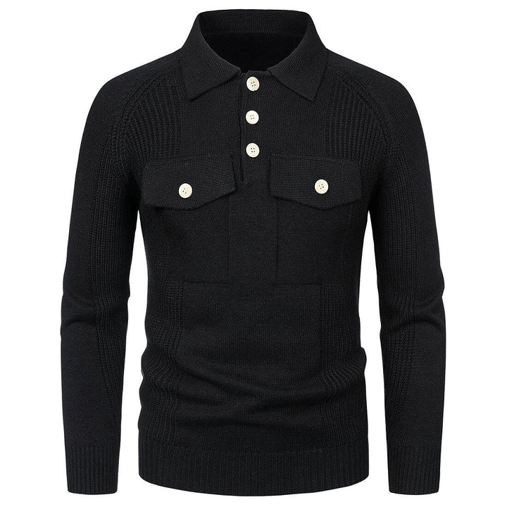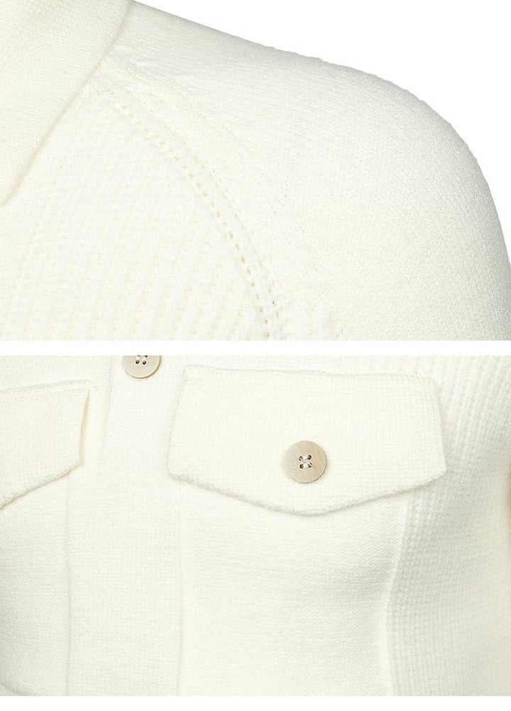 Men's Lapel Pocket Vintage Style Raglan Sleeve Slim Fit Knit Sweater