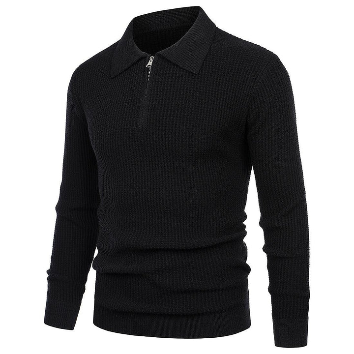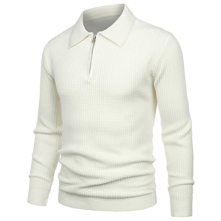 Men's Lapel Pullover Waffle Half Zipper Slim Fit Sweater