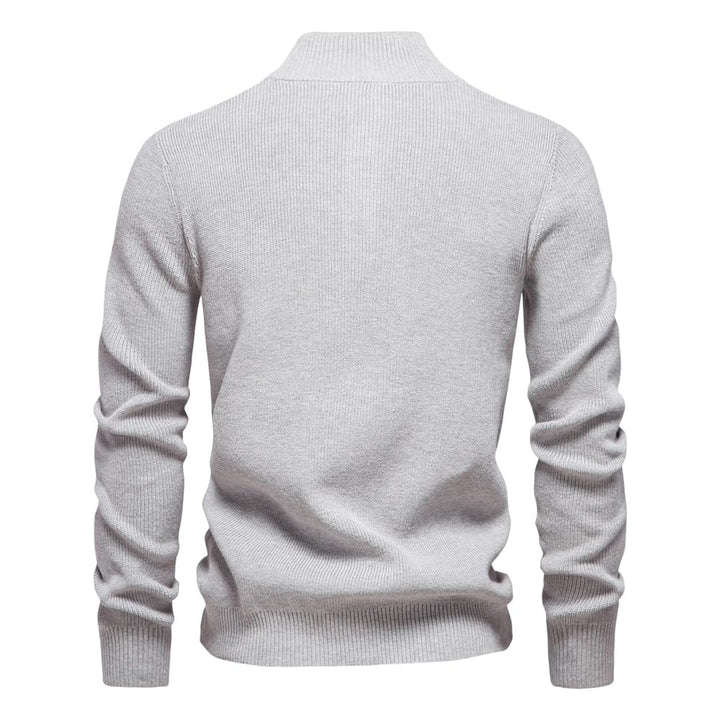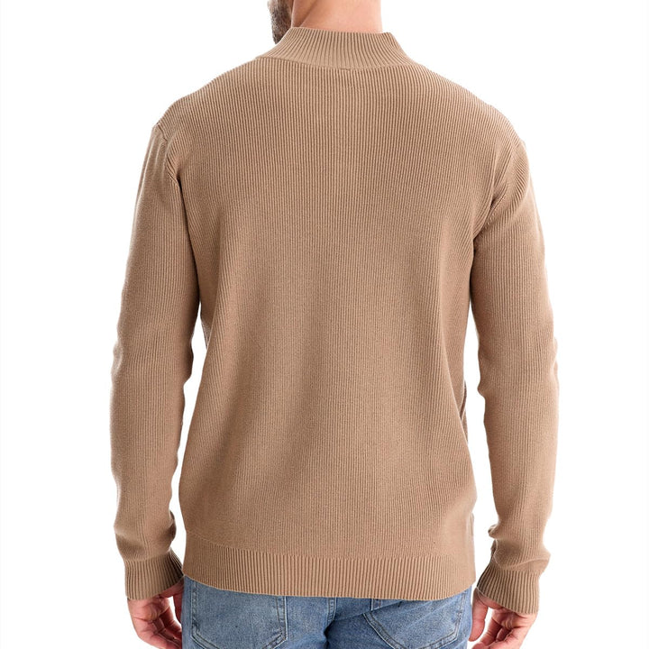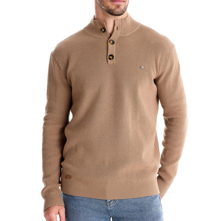 Men's Mock Neck Button-Up Cotton Pullover Sweater