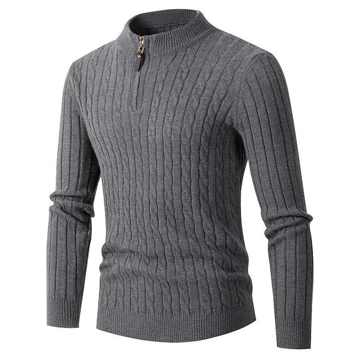 Men's Pullover Cable Half Zip Solid Color Stand Collar Sweater