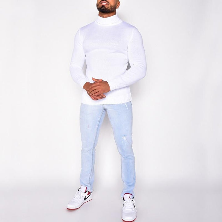 Men's Pullover Turtleneck Solid Color Basic Knit Sweater