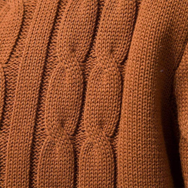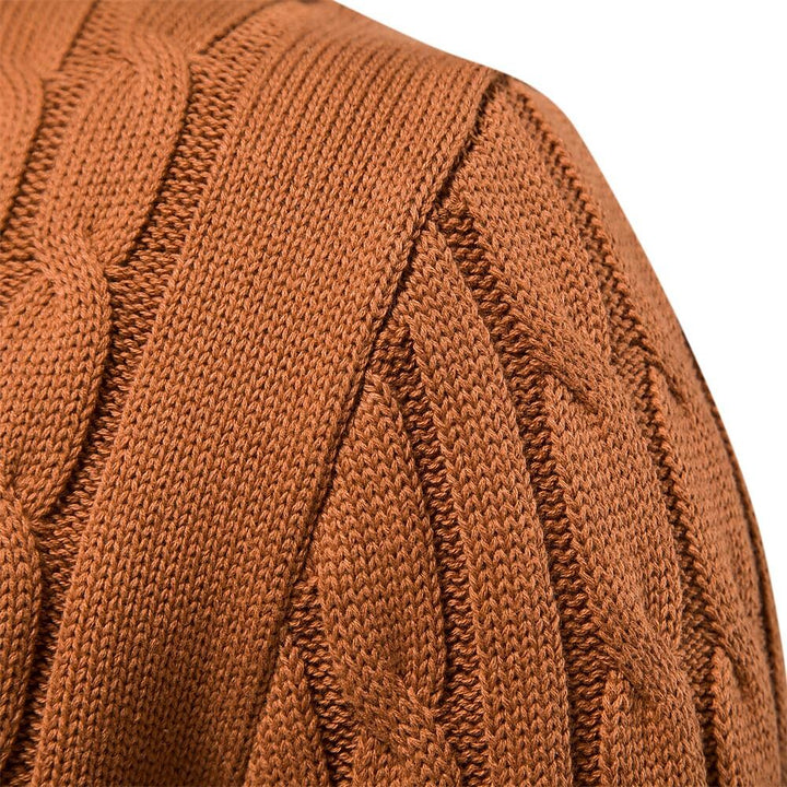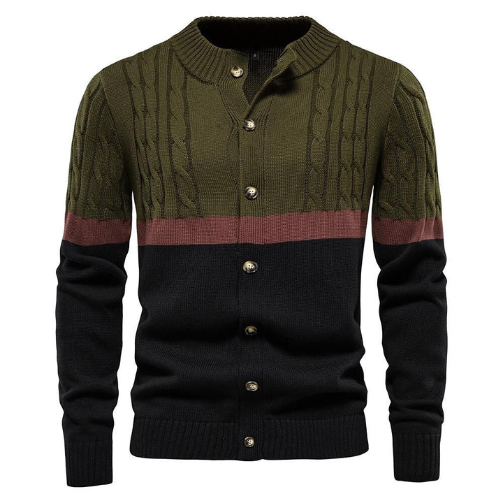 Men's Stand Collar Cotton Contrast Striped Cable Cardigan