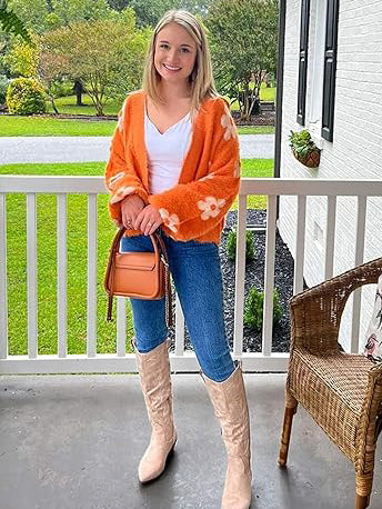 "Love, love, love this cardigan. Orange is my favorite color, but it does not look good one me. I saw this while meandering through Stywe the other day and absolutely fell in love with it. My closet is mostly gray and black, so I thought this would be a good accent.