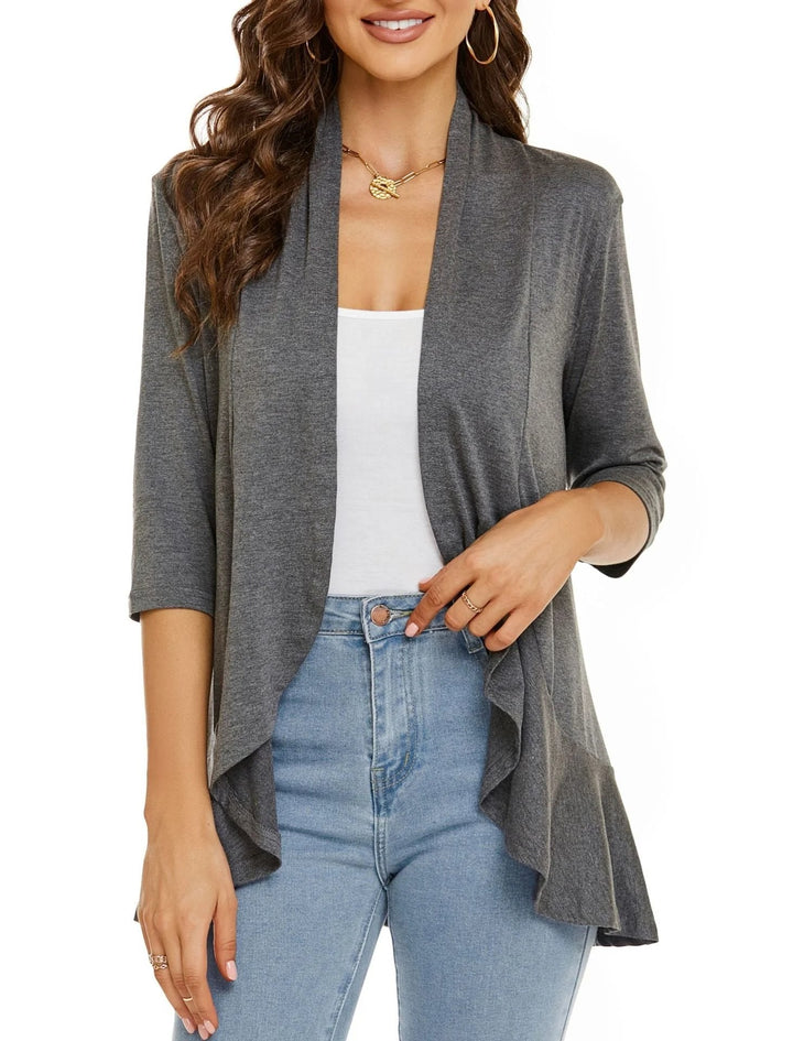✨Top-3 Sale Cardigan 2025✨|Women Fall/Winter Lightweight Open Front Casual Ruffle Cardigan